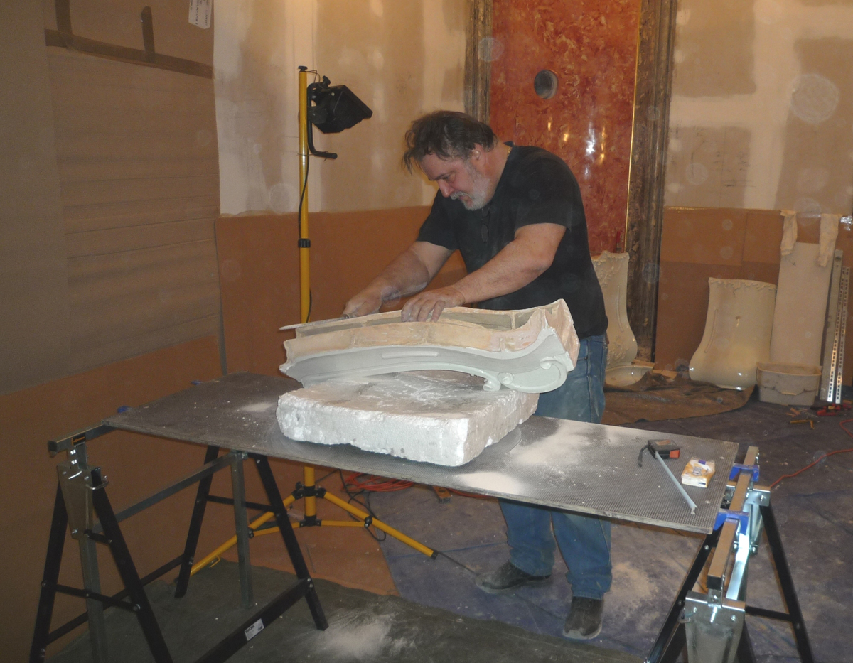 Von Ruß und Unreinheiten gereinigt, vorhandene Risse und Sprünge werden sorgfältig geklebt und hinter arbeitet.